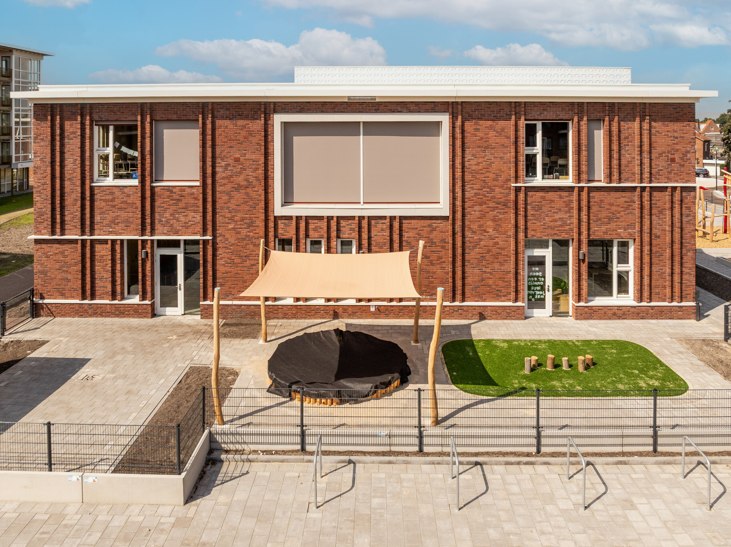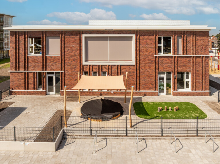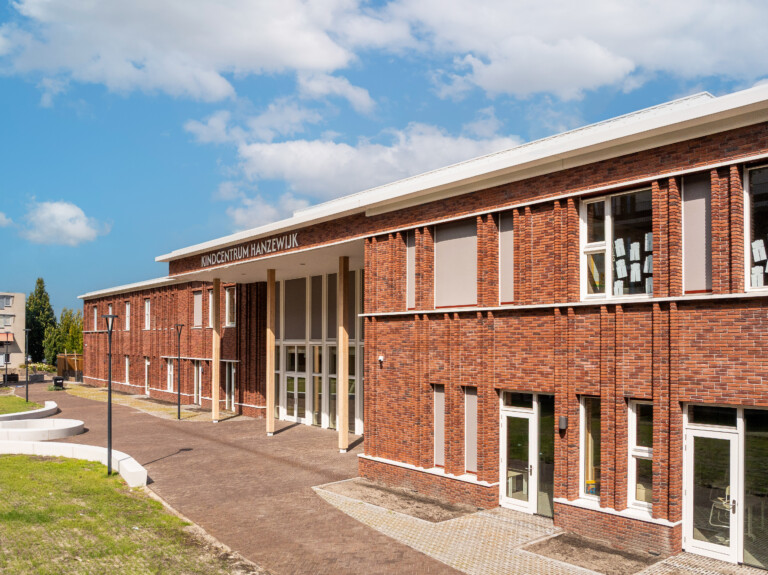Kindcentrum Hanzewijk is niet alleen zo circulair mogelijk gerealiseerd, maar ook energiezuinig en comfortabel. Dankzij een hoogwaardige thermische schil, royale overstekken en automatische zonwering blijft het binnenklimaat passief koel. Bodemwarmte, warmtepompen, warmteterugwinning en zonnepanelen maken het gebouw energieneutraal. Grote raampartijen en een centrale ontmoetingsruimte zorgen voor veel daglicht en een open, uitnodigende sfeer.